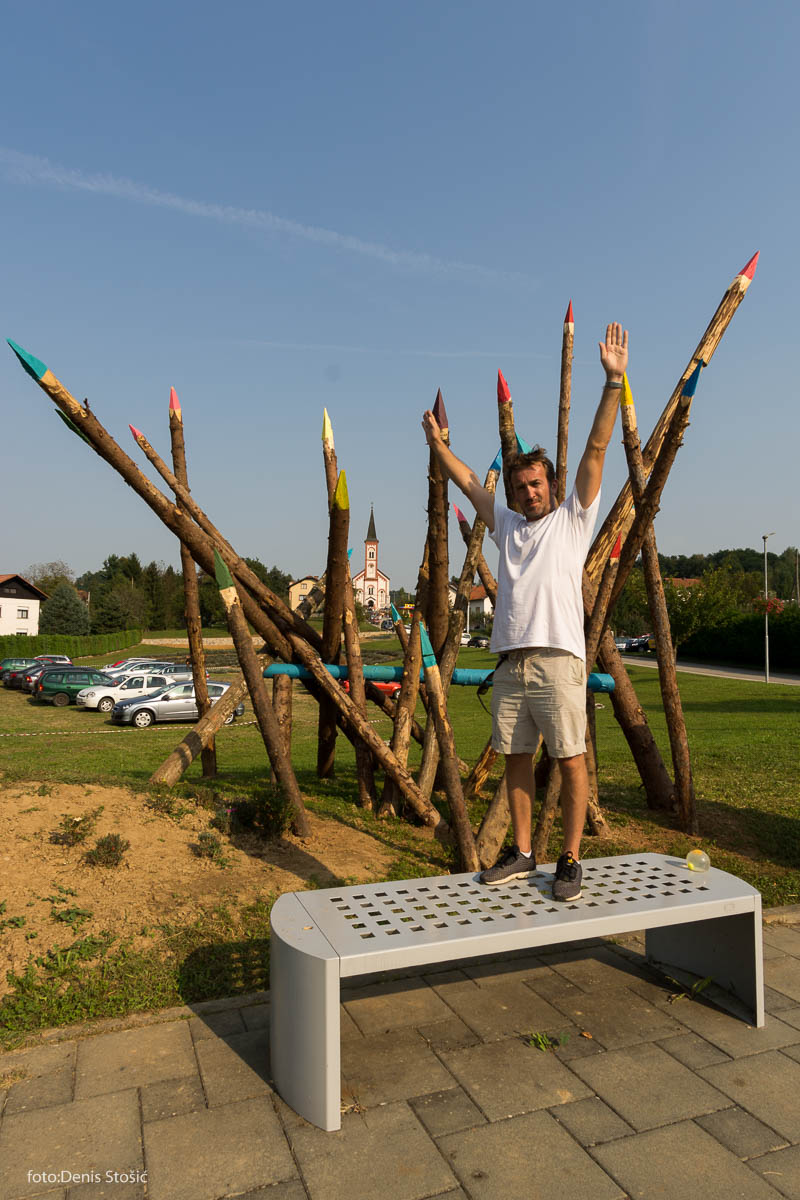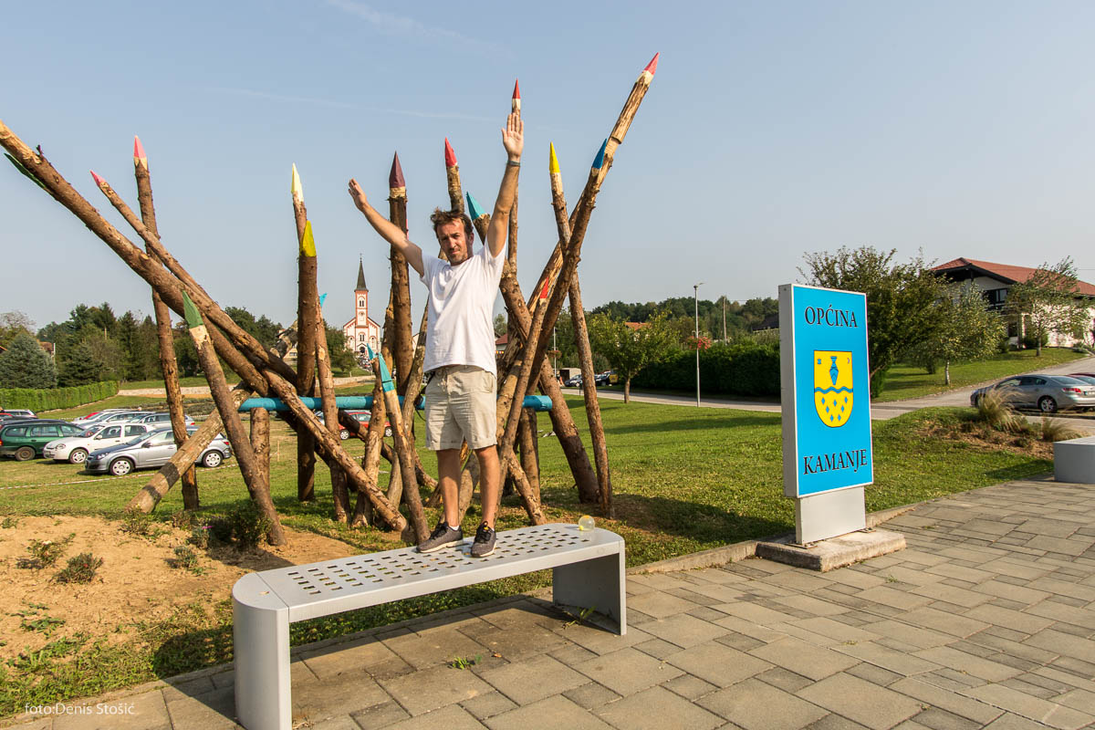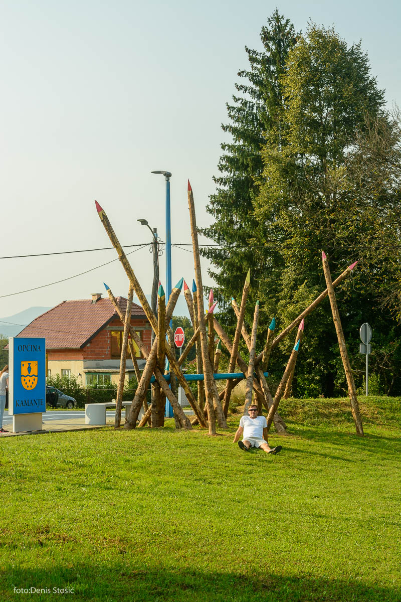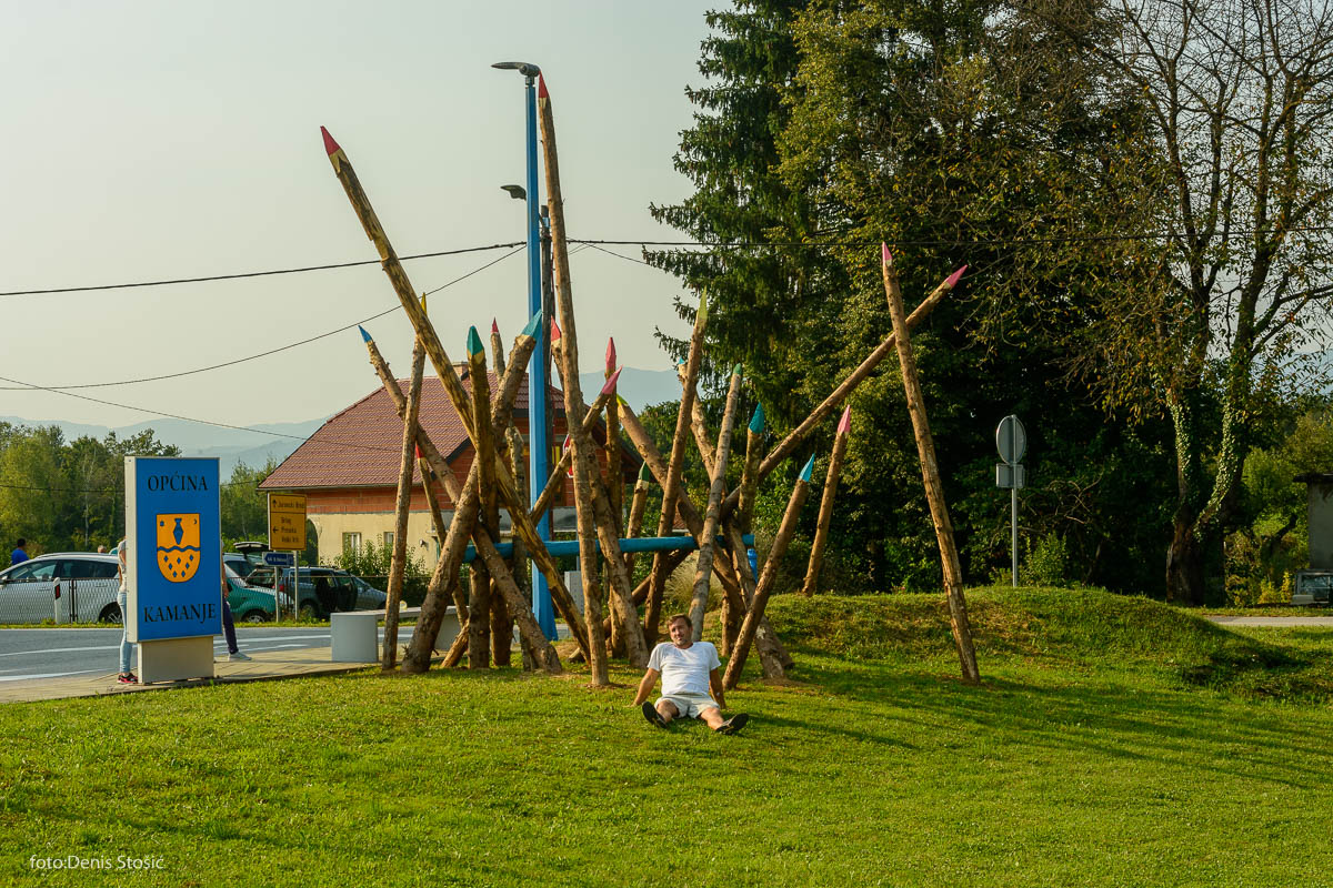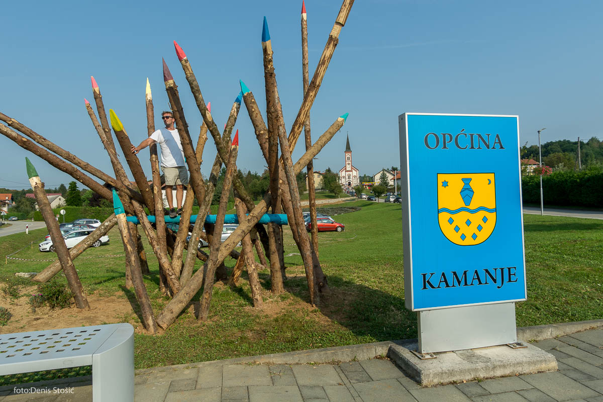 Slikar i ikonceptualni umjetnik Nikola Vukmanić, voditelj festivala DOK – festivala za ljude dobre volje – oplemenio je Kamanje i instaka lacijom koja simbolizira olovke, a povodom početka nove školske godine. Foto: Denis Stošić