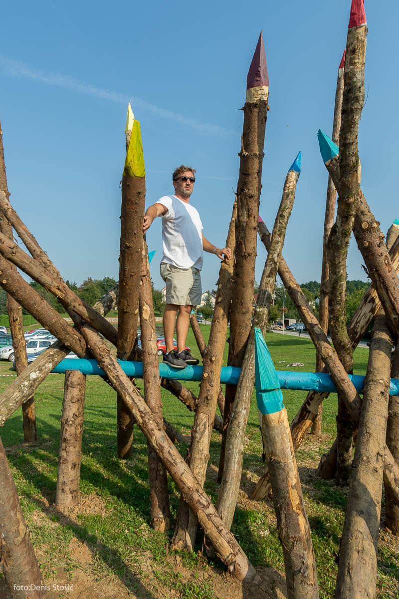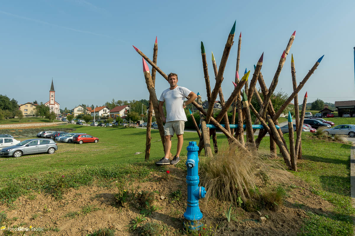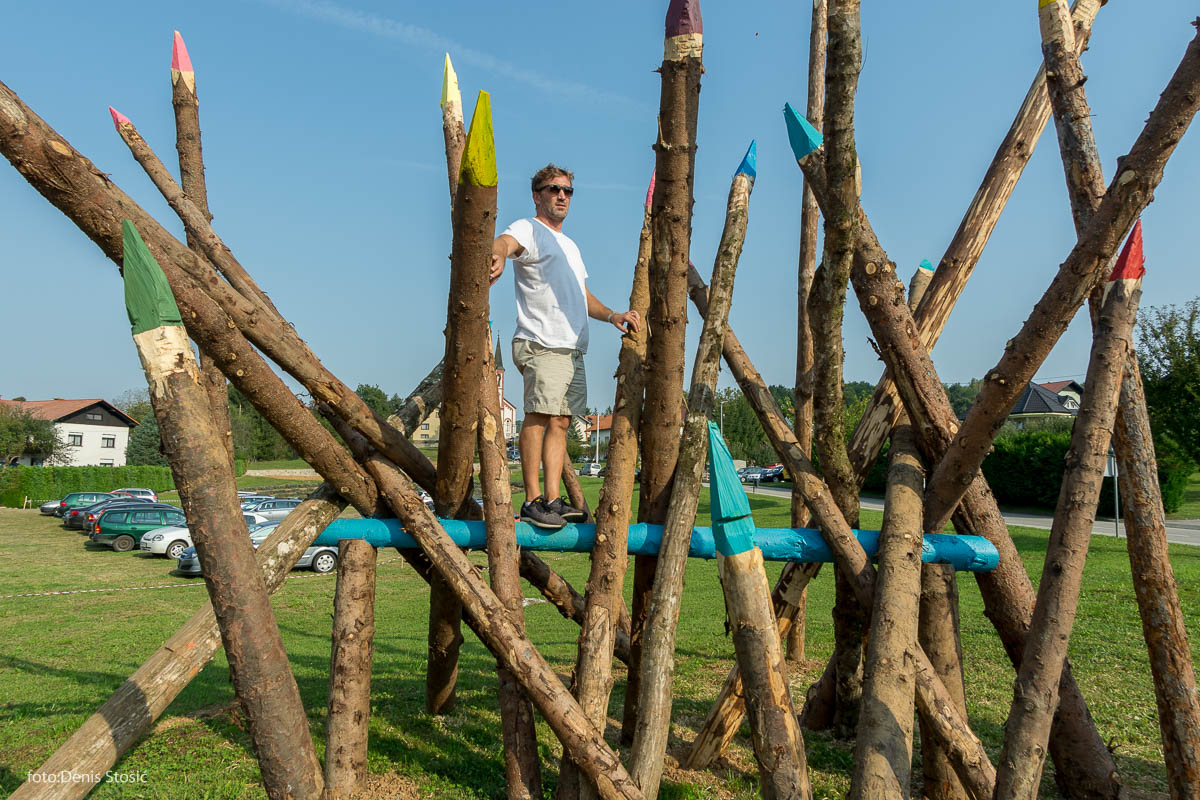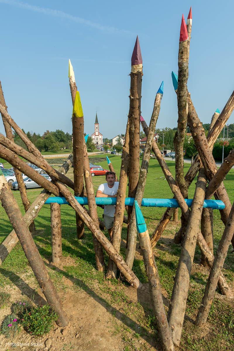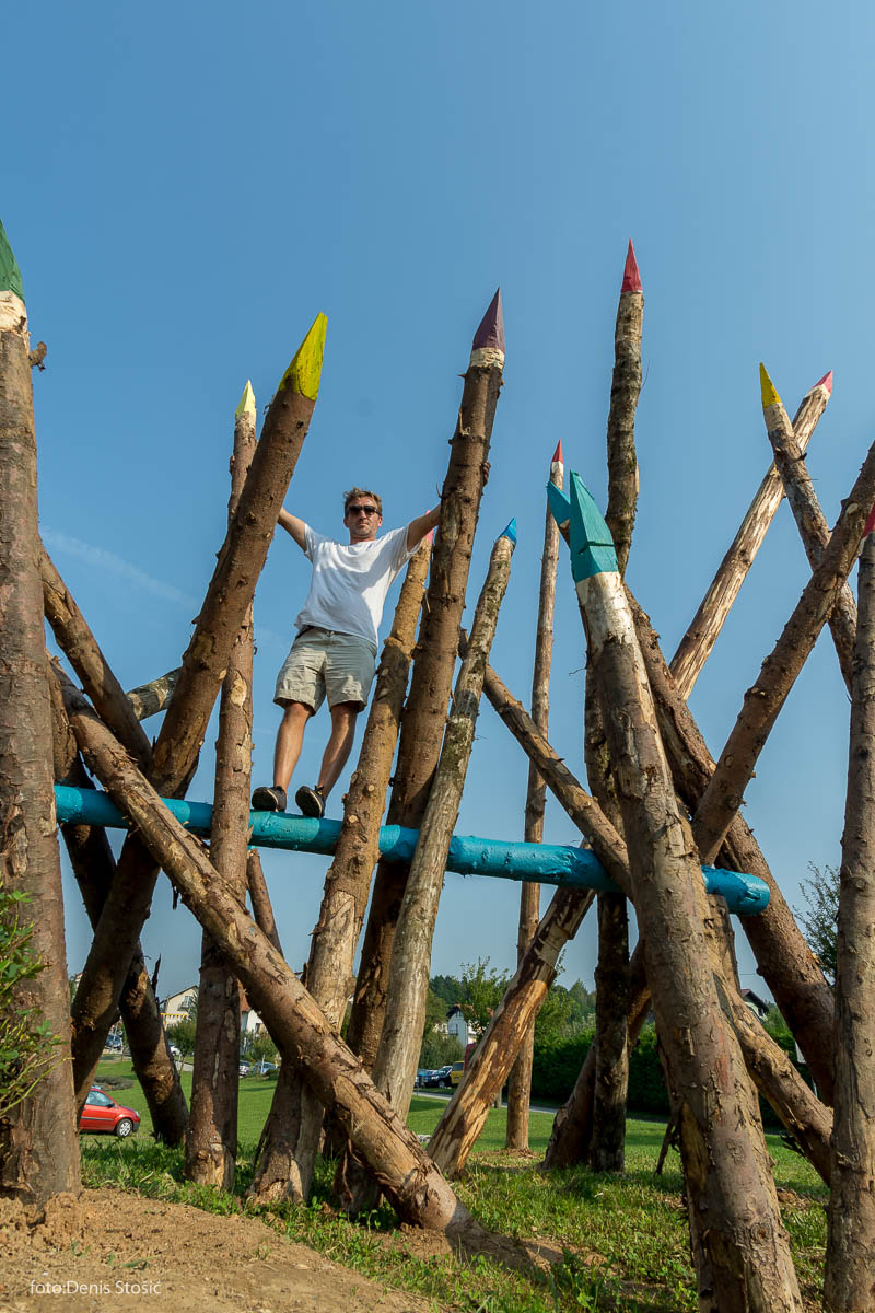 Slikar i ikonceptualni umjetnik Nikola Vukmanić, voditelj festivala DOK – festivala za ljude dobre volje – oplemenio je Kamanje i instaka lacijom koja simbolizira olovke, a povodom početka nove školske godine. Foto: Denis Stošić