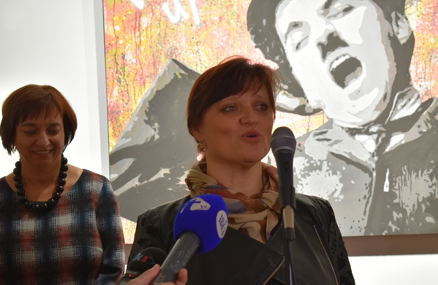 Pročelnica Upravnog odjela za školstvo Karlovačke županije Marija Medić i voditeljica Galerije “Vjekoslav Karas” slikarica Aleksandra Goreta. Otvorenje izložbe Leonarda Lesića “Existence” u Galeriji “Vjekoslav Karas” u Karlovcu 20. rujna 2017 godine. Foto: Marin Bakić