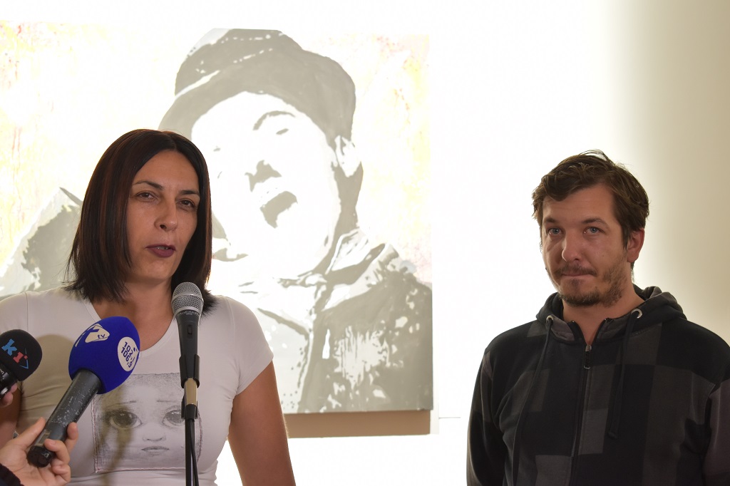 Leonard Lesić. Pročelnica Upravnog odjela za školstvo Karlovačke županije Marija Medić i voditeljica Galerije “Vjekoslav Karas” slikarica Aleksandra Goreta. Otvorenje izložbe Leonarda Lesića “Existence” u Galeriji “Vjekoslav Karas” u Karlovcu 20. rujna 2017 godine. Foto: Marin Bakić