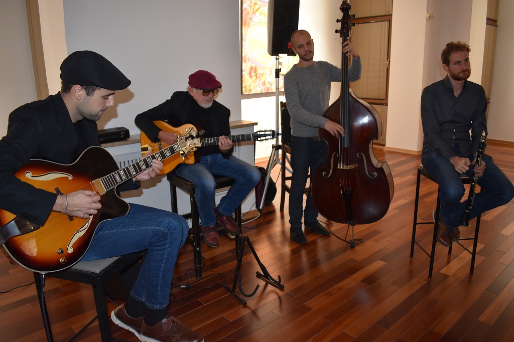 Gyspy Swing Quartet. Hrvojka Božić, ravnateljica Gradskog muzeja Karlovac. Leonard Lesić. Leonard Lesić. Leonard Lesić. Pročelnica Upravnog odjela za školstvo Karlovačke županije Marija Medić i voditeljica Galerije “Vjekoslav Karas” slikarica Aleksandra Goreta. Otvorenje izložbe Leonarda Lesića “Existence” u Galeriji “Vjekoslav Karas” u Karlovcu 20. rujna 2017 godine. Foto: Marin Bakić